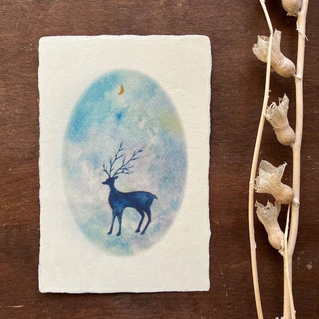 和紙の絵葉書『青のトナカイ』