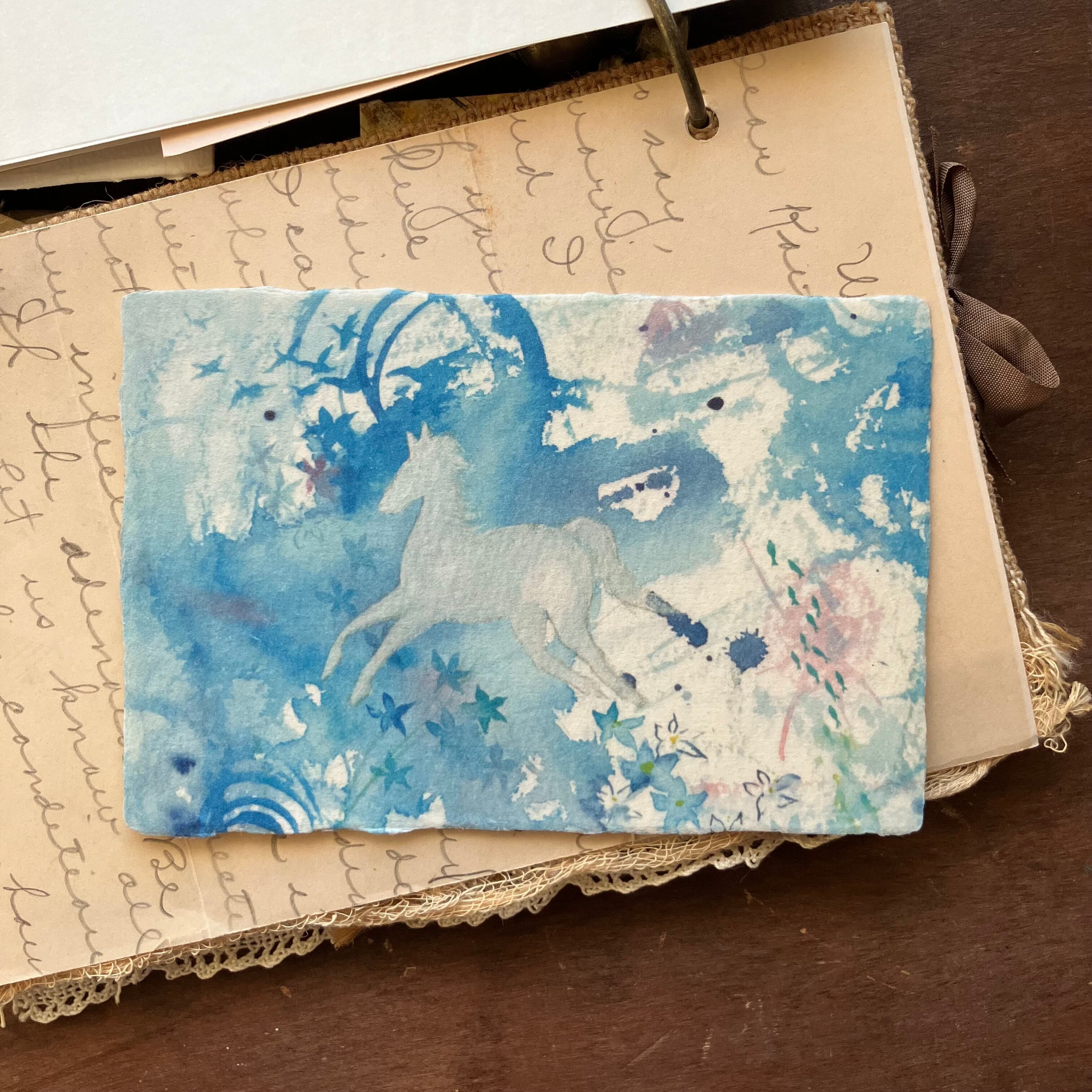 和紙の絵葉書『青を駆ける』