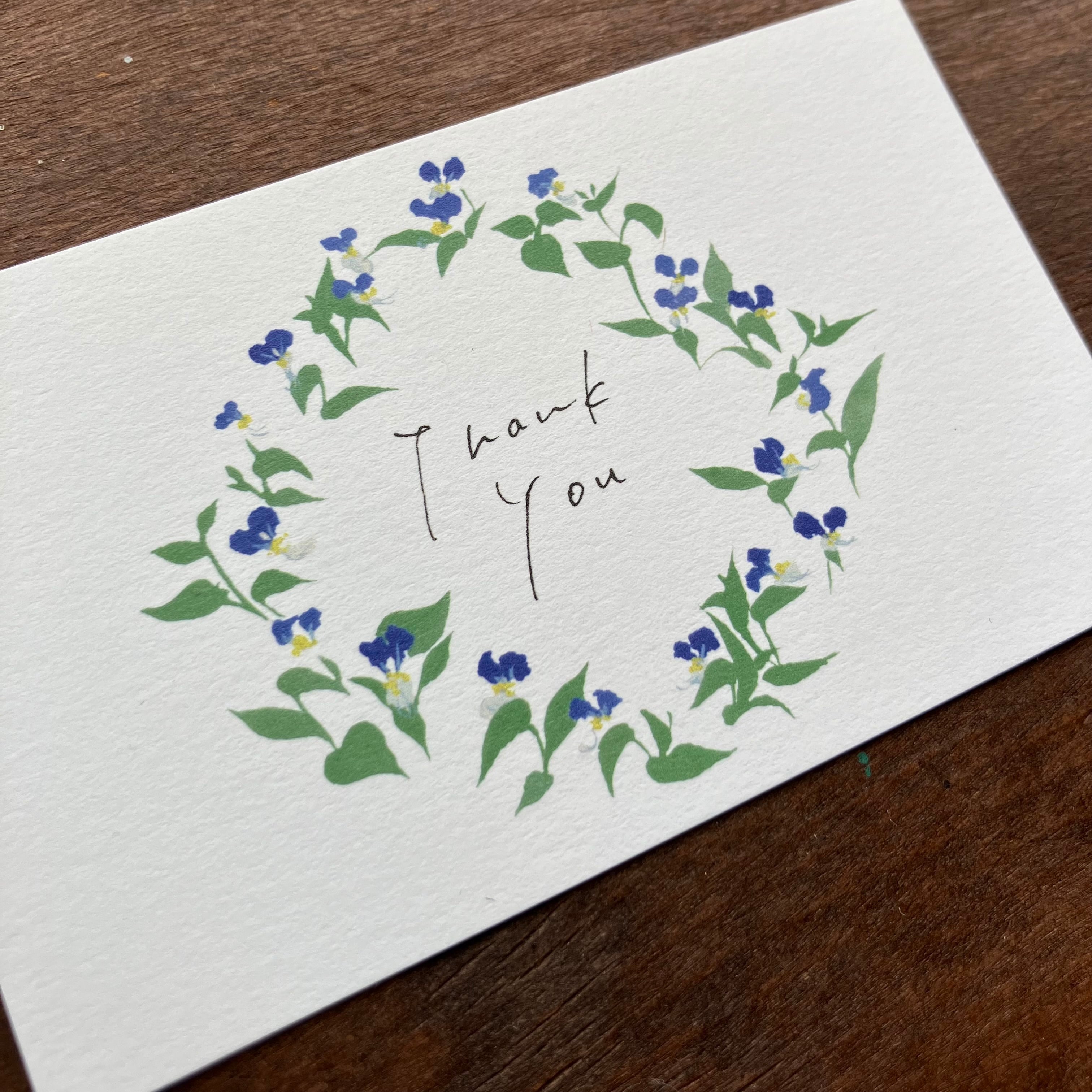 露草の環と「Thank you」の手書きの文字が印刷されたカードです。
