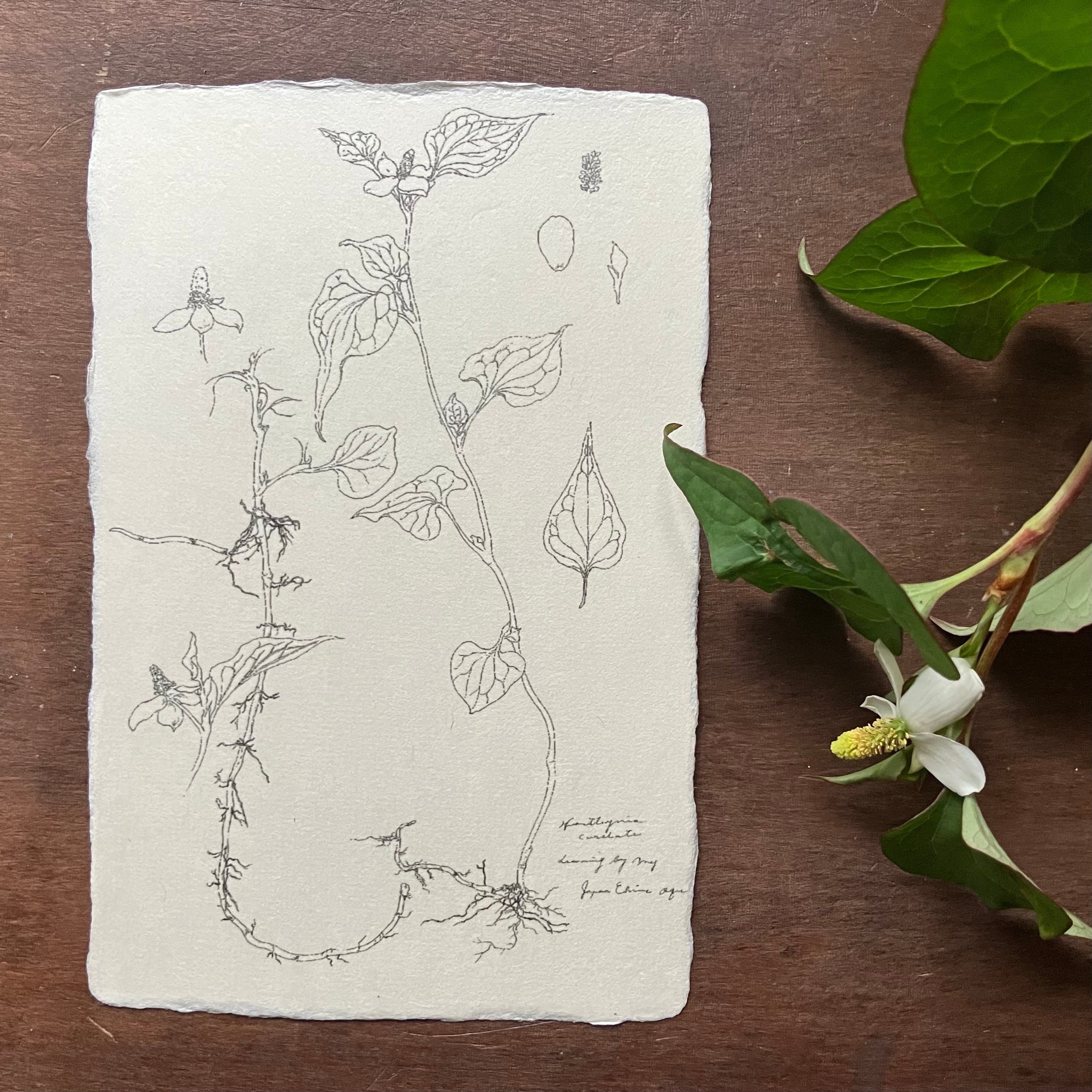 牧野富太郎博士のようにはなかなか繊細に描けませんが、博士が残された植物画のようにドクダミの作りが出来るだけわかるように描きました。